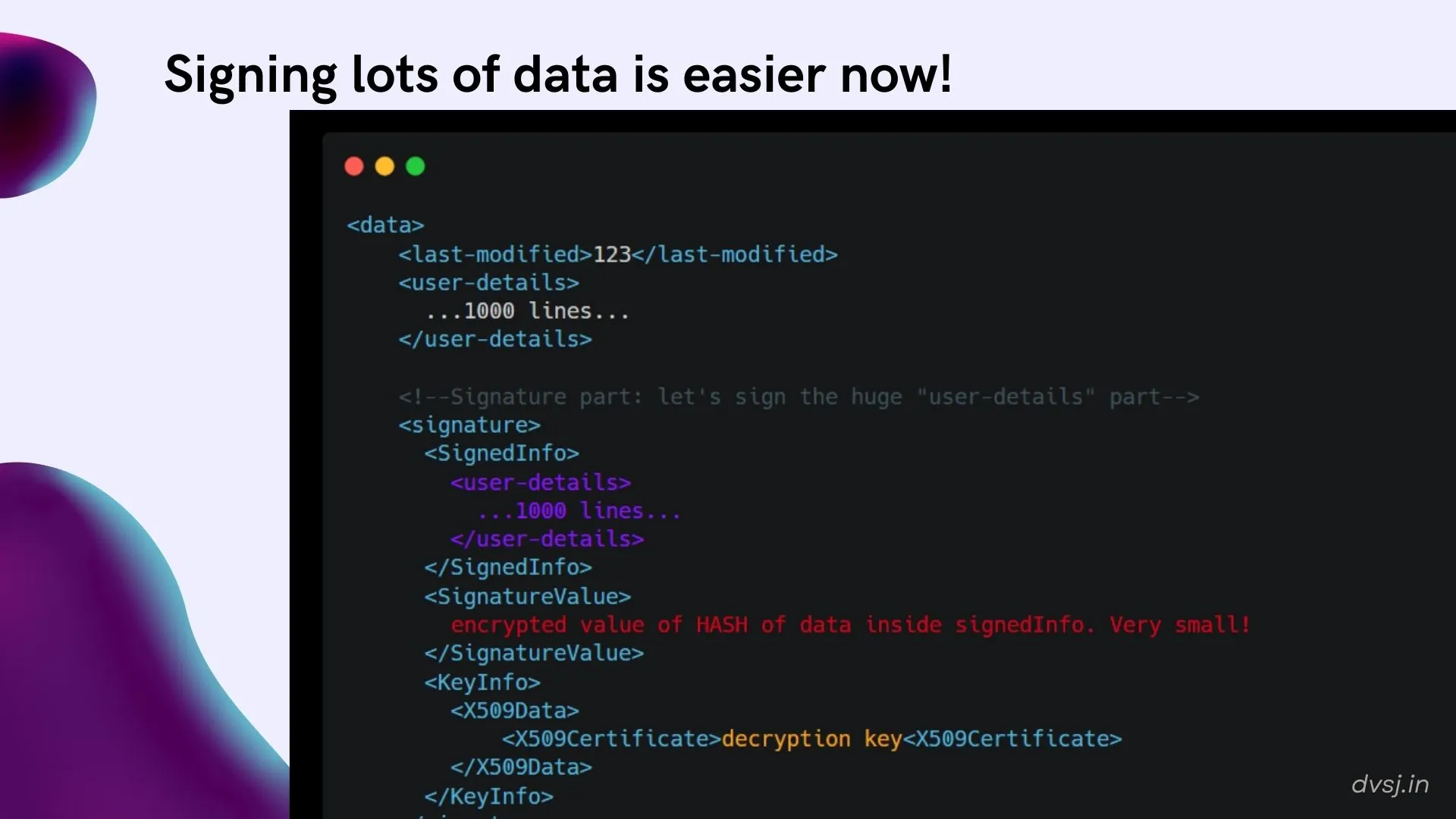 say you want to display this on your website this is what the html for that table looks like html has both styling needed + data if you had to write the data down, how would you write it? in computers, we generally store it in a format called JSON (Javascript object notation) there's also an alternate format to store data, called XML XML comes with a friend - a complimenting format '.xslt' (style transforms) that can be used to store styling for that data If you look closely, you can see where the xslt refers to the 'user' entry in the XML Overall, xslt picks data up from xml and tries to TRANSFORM it into a HTML this gives us a happy family: xml to store data, xslt to convert it into a HTML buuttt JS is much more powerful that xslt at transformations (yay JSON?) but xslt said 'screw you!' and developed a plugin where you can use JS inside xslt you can see an example here, where the JS function on top is being called inside xslt below it here it takes the date from XML and converts it to the user's timezone but why top at JS? Xalan could support other languages like Java too What have we learnt, kids? xslt is capable of transforming XML into any other format, not only HTML - it can even transform it into JSON! So we realize that there are a lot of cool things going on in the XML ecosystem. Transferring data is just a teeny tiny part of it. let's take a quick detour and talk about some other stuff a crash-course on signing take a minute to check this out: we can 'sign' data in XML by adding it to <SignedInfo>, and including the encrypted version of that data and a decryption key we could sign all the original data if we want to (although that means including the same data in an encrypted format too, so 3x the size) ...or we could just encrypt the hash of the original data So here are the updated steps: instead of direct comparison of original data and encrypted data, we hash the original data and compare it with the encrypted hash Instead of copying the original data again inside <SignedInfo>, we can just add a reference to it a quick recap: what we want to encrypt is inside <SignedInfo>, encrypted hash of <SignedInfo> is inside <SignatureValue>. <KeyInfo> has info required to decrypt <SignatureValue> and check if <SignedInfo> is legit. what if we want to sign not only user-details, but also last-modified? Easy, just add that reference too oh I forgot: since we want to decrypt the encrypted data with the key to check signature, we also need to include the algo used to encrypt it. we have another problem: hashes are unforgiving. In the app, all 3 formats in the image will give the same value, '123' - but hashes will be different. Another case: for the app, it doesn't matter if user-details comes on top or last-modified does. But again, the hash will differ. But we want the same value to give the same hash. So we also include the algorithm to be used to normalize data (sort/remove whitespace), and call it Canonicalization Method HTML has comments etc too, which actually need to be ignored while hashing - because to the app it'd all be the same value So we specify any transformations to be done before hashing it as well, like removing comments A summary of the full process it gets interesting now! yep yepp (from the first part) dayumn sonn let's get to the issue now aight aight back up SAML is a protocol used to log in via 3rd party services (like log in with FB/log in with Google etc) SAML uses XML to transfer data between these apps and calls it a 'SAML assertion' looks all complicated, but it's basically what we saw before with lots of data. You can see the signedInfo, data outside, transform, canonicalization method etc this is what the attacker's modified XML looked like. They got a legit copy of the SAML XML and modified it to use Java code using Xalan code inside the <transform> part! This is how we process the XML: we verify hashes of data in <SignedInfo>, and then verify <SignedInfo> itself using <KeyInfo>. The problem is that by the time it got to the <KeyInfo> part, the attack was over! The malicious code runs during verification of hashes in the first step. Then the KeyInfo verification happens, which fails and shows an error - but the damage is already done. the obvious question and that was the obvious fix. Check if <SignedInfo> is valid using the <SignatureValue> the obvious fix' code (this is from the library Zoho used, not Zoho's code itself). Actual code changes from that library don't worry, there are some more footguns some apps use a different library to validate XML and then a different library to handle the SAML process. If the same XML includes multiple assertions (one legit and one malicious), validation could happen in one and SAML in the other there's also the problem of the XML spec not helping out. For eg., this order of validation (<KeyInfo> first then <SignedInfo>) should have been in the spec/docs, but is mentioned nowhere. because the spec isn't clear, different libraries behave differently not to mention, just like signing there's also encryption ._. andd you can include external files as well in the XML apart from this, there's also another format, DTD in the XML family did I mention you can use variables too? Search for 'billion laughs' and tons of tiny 'features' that are waiting to bite you in your plumpy backside even worse: each library has different ways of handling each feature, require you to manually disable features, have different defaults... while the average user just wants to use XML to store some data! and there's that! I encourage you to put in the effort to learn things in depth and explore internals. I hope you do - and that you share that knowledge with me too!